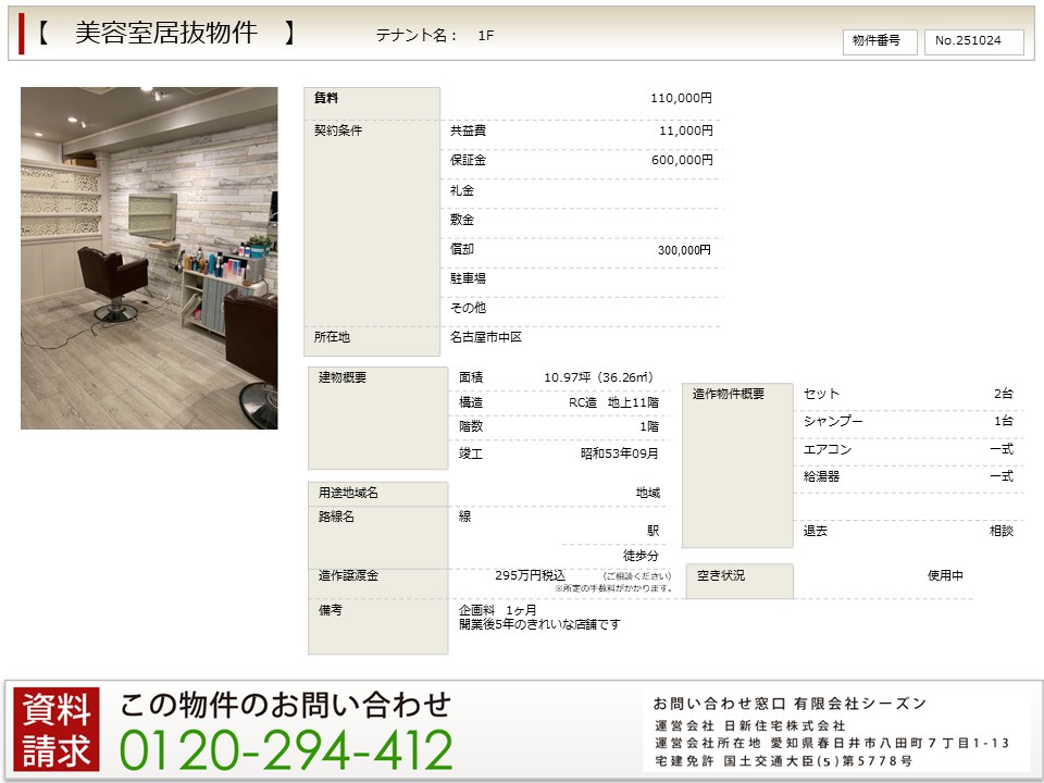 美容院の居抜き物件情報 未掲載の「お宝物件」も多数あります!